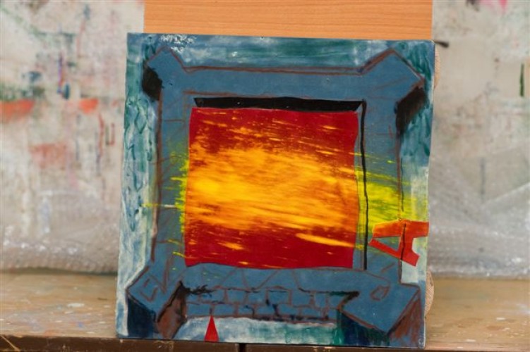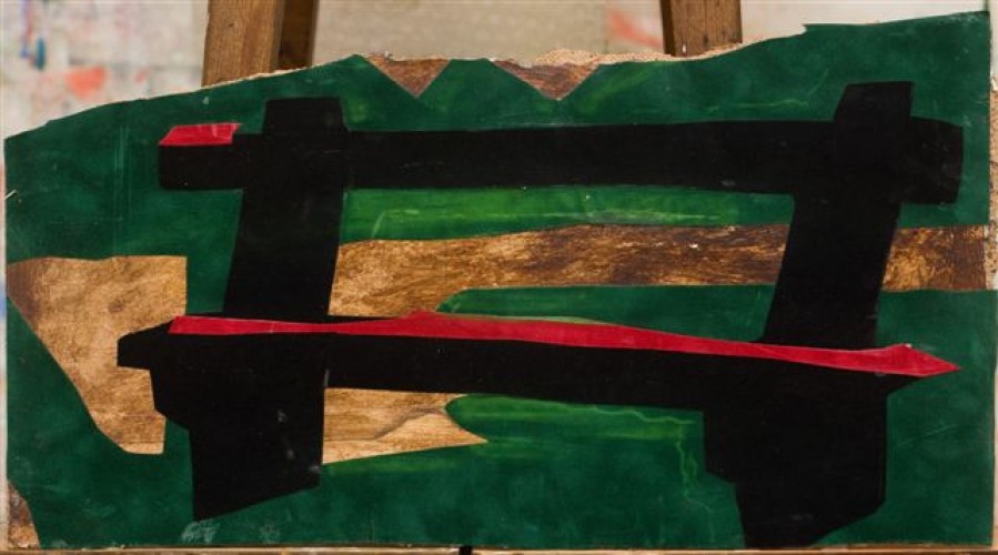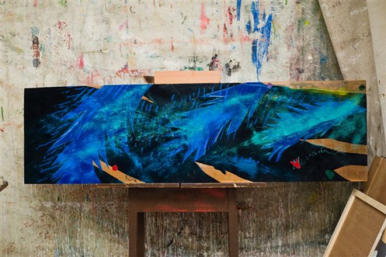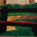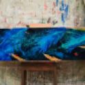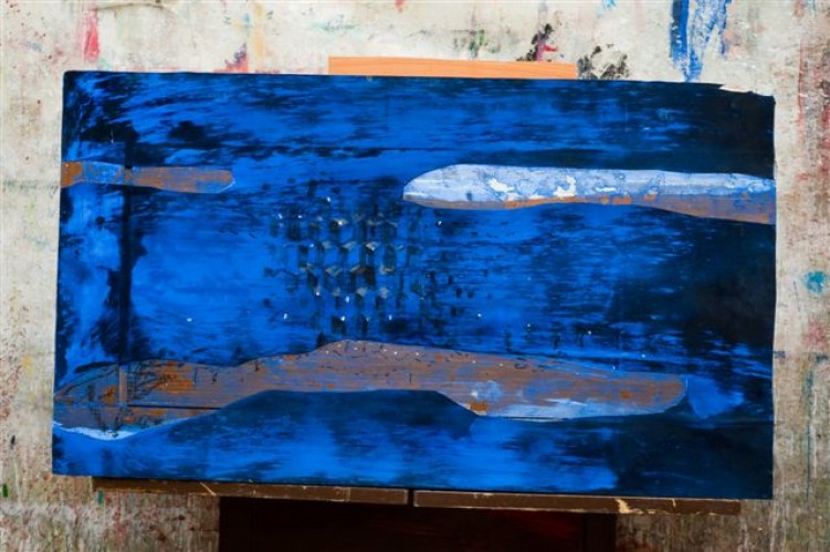 Megint máskor bársonyos felületekre fest, kihasználva ennek az anyagnak a különleges fényelnyelő és -visszaverő hatását. Így azon a festményén is, melyen haldokló apjától búcsúzik: a képen egy vörösen izzó lábnyom látható alulnézetből.