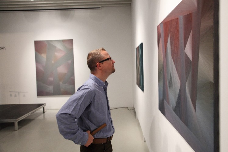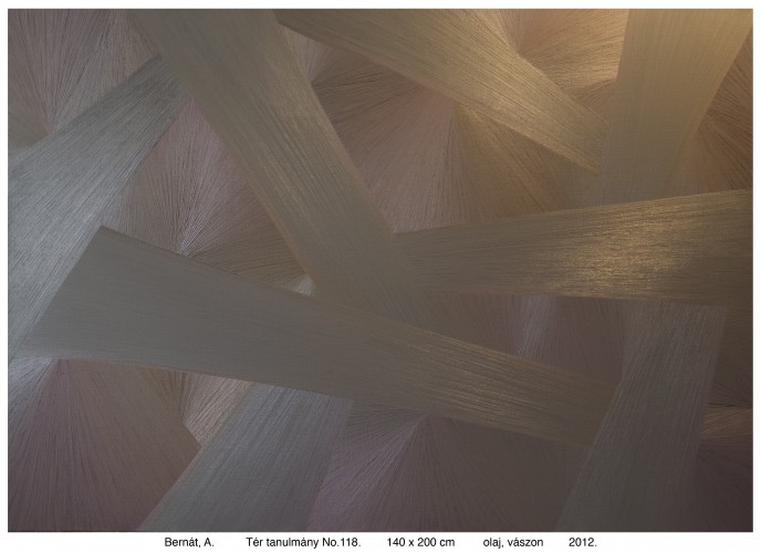 Bernát András mostani kiállításán a 2010-ben elkezdett tértanulmányaiból mutat be festményeket. A leginkább a kristályok szerkezetére emlékeztető képi struktúrák a ’80-as évek második felében festett térábrázolások és az Objektum-sorozat esszenciáinak is tekinthetők.