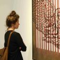 És persze ugyanezeket a kérdéseket visszatranszponálhatjuk a festményekbe is: mi a különbség a kései Árpád-korban bevezetett nyolc sávos vörös-fehér felségjel és a vele megtévesztésig azonosnak tűnő kortárs politikai címke között? Mi a különbség a sajtófotóvá stilizált asszonykórus lába alól előtörő barna megfolyás és a hokedlin parádézó közlekedési rendőr kabátjának színe között? Mi a különbség az Ígéret című képen megjelenő bohóc riasztó ágálása és a politikai hatos ikrek ugrócsoportja által bemutatott kunszt között? Mi a különbség a Hímzésre vetődő ebek hullahopp karikás produkciója és a Fényreklám párducainak acsarkodása között?