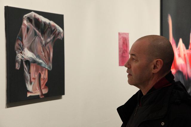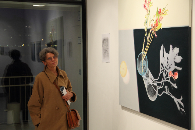 Legfrissebb anyagában a vad bíborokkal és rózsaszínekkel megfestett figuratív képek mellett, újra hangsúlyos szerepet kapnak a csendéletek.