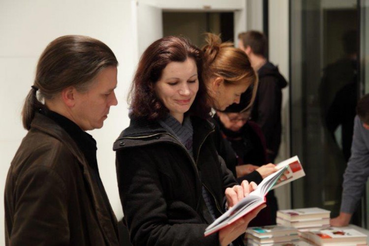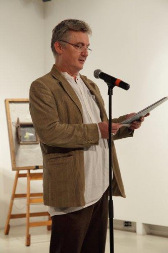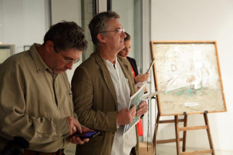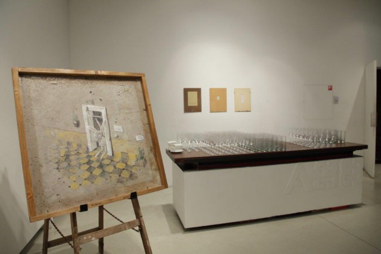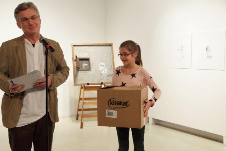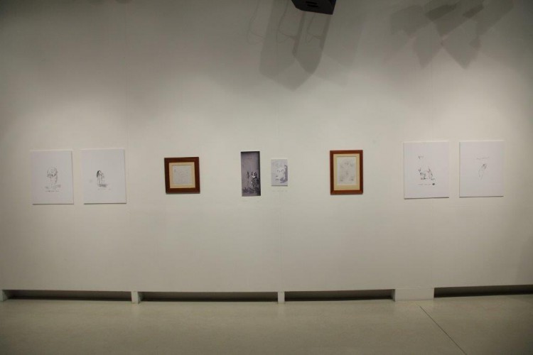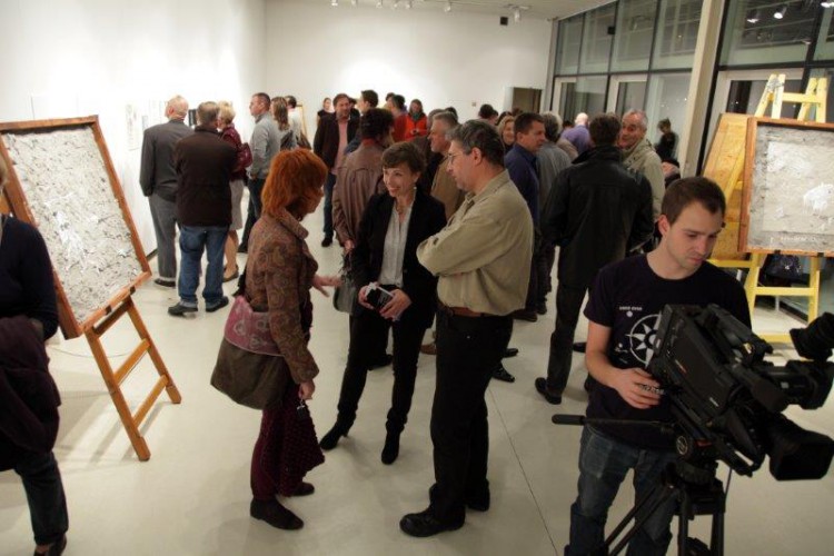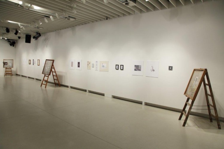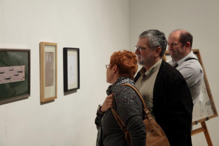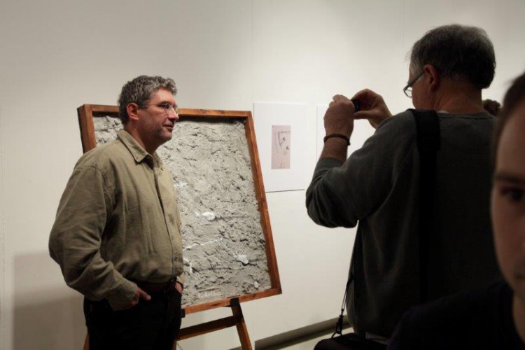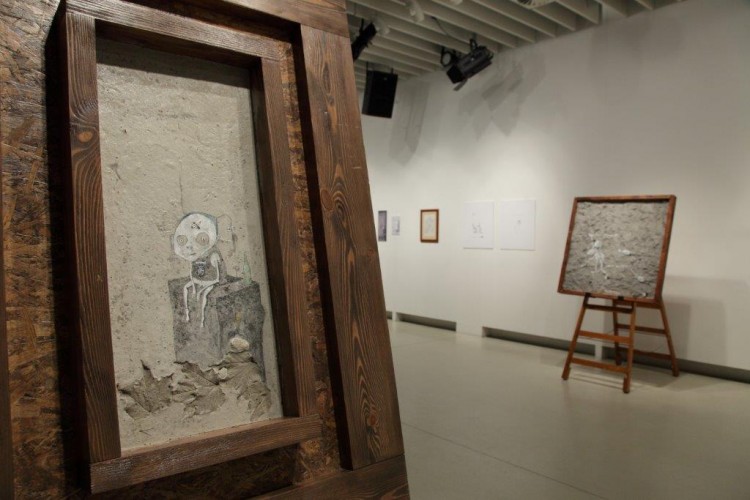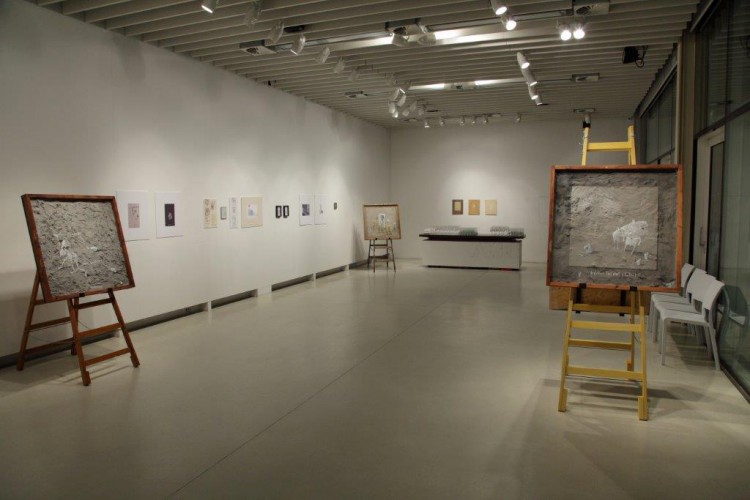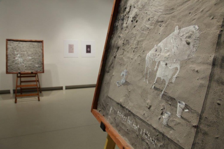 A kiállításon a natúr betonképek és a grafikák mellett láthatjuk még néhány könyvillusztrációját is.