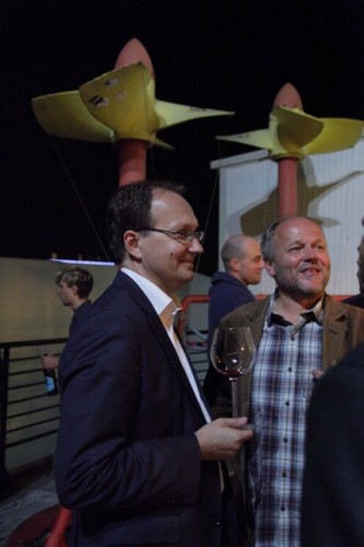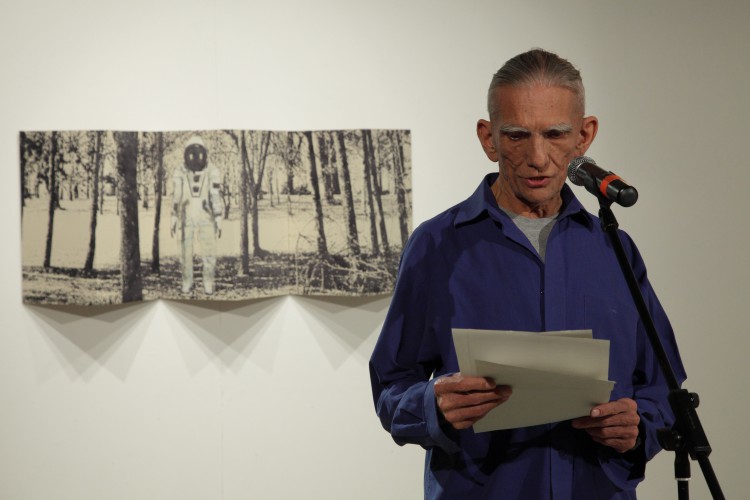 Szerencsére a kiállítás záróköveként itt van ez a kis paraván az erdővel és a furcsa, suta űrhajóssal. Igaz, hogy nem tudhatjuk, milyen szándékkal közelít, mindenesetre a különös kis figura kulturális asszociációs mezeje a maga művészettörténeti beágyazottságával egyfajta kiegyensúlyozottság, nyugalom reményével kecsegtet. Nem tudhatjuk, merre kereshetjük mindezt. Viszont reméljük, hogy létezik. Valahol.