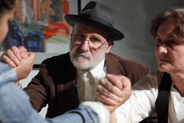Az első találkozásom Bukta Imrével a 90-es évek második felére esett. Műgyűjtő mentorommal, Takács Lajossal együtt látogattuk meg az akkor még Szentendrén élő művészt.