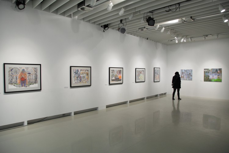 A mostani kiállítás darabjai papír és vászon alapú síkképekből állnak, olyan vizuális lírákból, amik zömét már az idei évben készített művek adják.