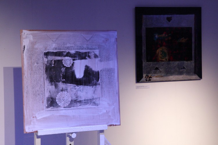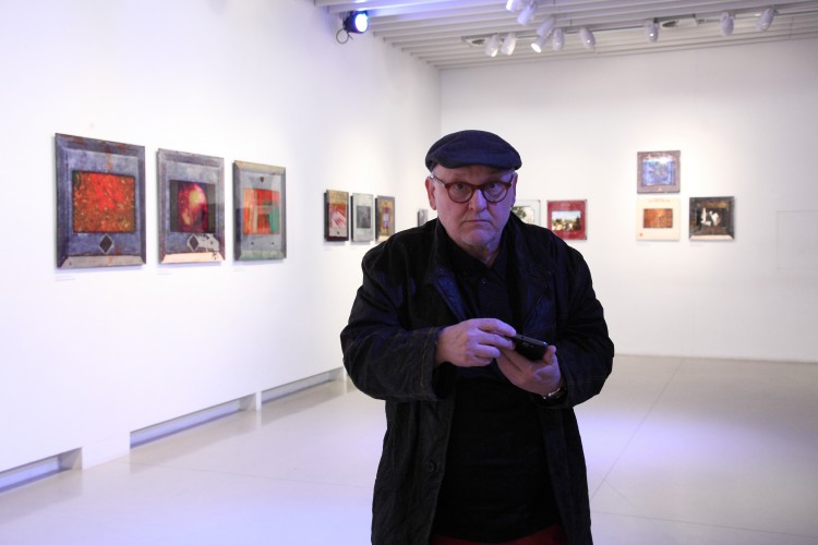 A kiállításon csak friss színes fotóalapú munkák lesznek láthatók. Minyó mélységi montázst építve arany- és ezüstmetállal kézimunkázza a plexi fotókat.
