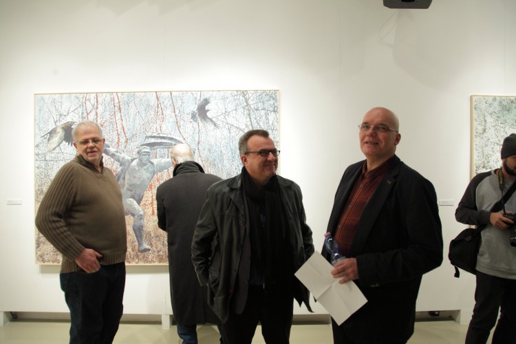 Szigeti Tamás számára képeket festeni egy jó ideje egyet jelent a téralkotással. A texturális kísérletek és a kollázs technikák az új képeken egyszerre utalnak térbeli elhelyezkedésre, az alá- és fölérendeltségi viszonyokra, és utaztatják a szemlélőt a „régen volt”, illetve a „mindez megtörténhet” felvetései mentén. A bódulathoz hasonló állapot, melyet a képek sugallnak, erős párhuzamokat mutat társadalmi/történelmi tudatunk megnyilvánulásaival.