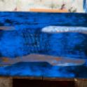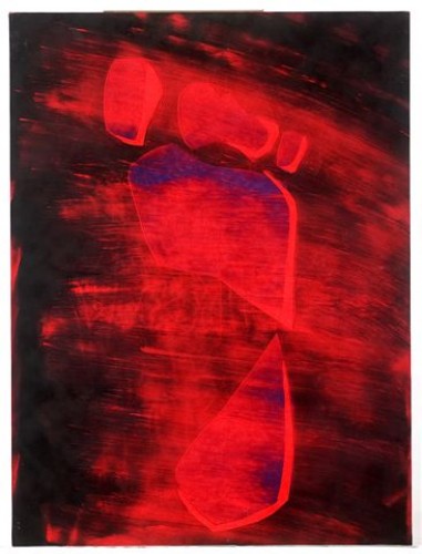 Megint máskor bársonyos felületekre fest, kihasználva ennek az anyagnak a különleges fényelnyelő és -visszaverő hatását. Így azon a festményén is, melyen haldokló apjától búcsúzik: a képen egy vörösen izzó lábnyom látható alulnézetből.