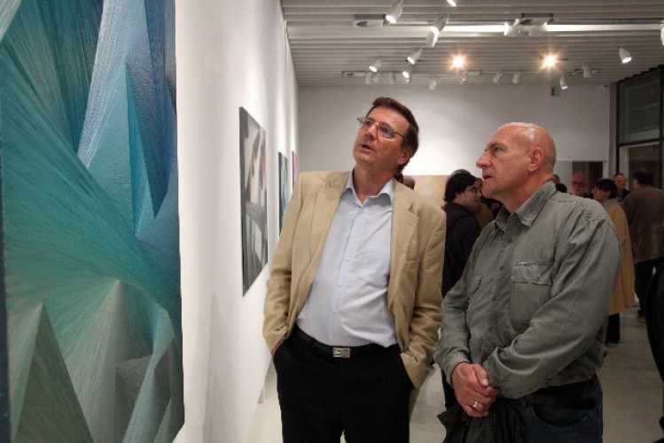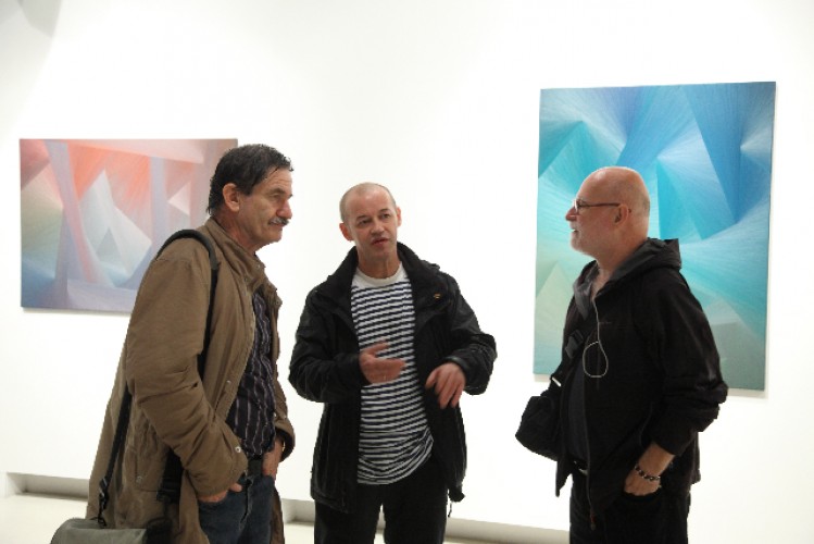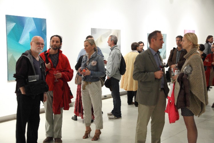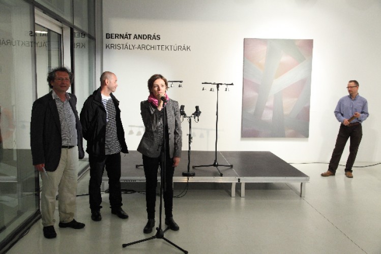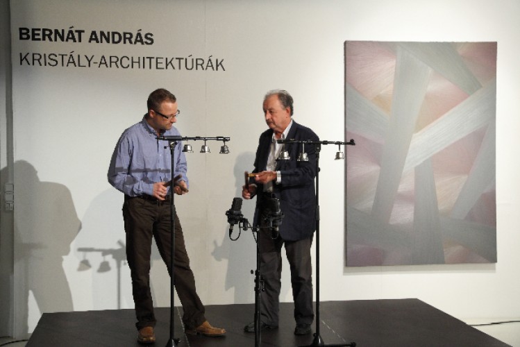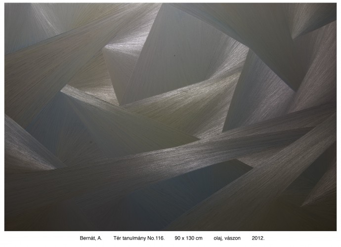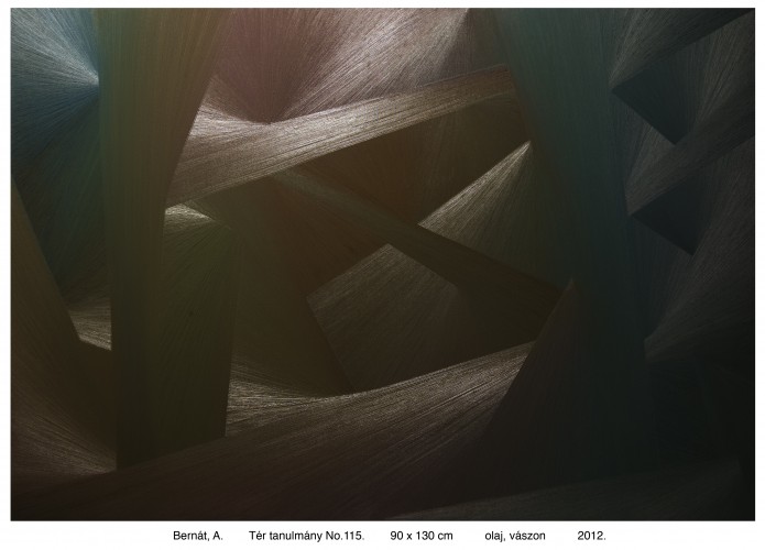 Bernát András mostani kiállításán a 2010-ben elkezdett tértanulmányaiból mutat be festményeket. A leginkább a kristályok szerkezetére emlékeztető képi struktúrák a ’80-as évek második felében festett térábrázolások és az Objektum-sorozat esszenciáinak is tekinthetők.