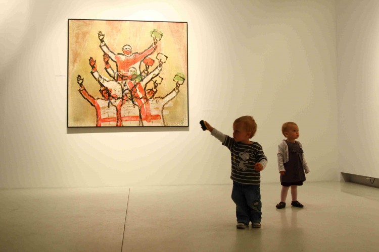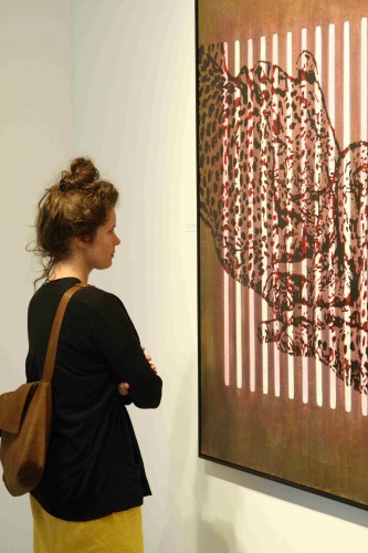 Mindezt persze nem csak az a néző kérdezi, aki egy kicsit el van már szokva a reprezentatív méretű, ikonszerű igényekkel fellépő, klasszikus technikákkal operáló, előtér-háttér-figura-kolorit viszonylatokban kommunikáló, mágikus realista festményektől, tehát aki a kortárs képzőművészet kapcsán nem mondjuk Peter Doigra gondol első lendületében (ami persze könnyen lehet, hogy fatális hiba), szóval ezeket a nagyon nyers, nesze-a-pofádba kérdéseket nem csak a megrökönyödött néző fogalmazza meg, hanem ezek a kérdések készen várják e festmények terében, épp úgy, mint rács mögött a párducok, mint falusi cirkuszban a rémisztő bohócok, és mint a közúti ellenőrök az út végén a kanyarban, vagy mint az asszonykórus a cirkusszal átellenes községháza előtt.
