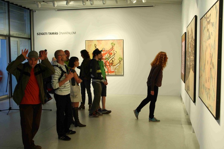 In medias res tudom csak kezdeni, mert amikor először találkoztam Szigeti Tamás új tárlatának anyagával az alkotó műtermében, mindjárt nyilvánvalóvá vált számomra, hogy túl későn érkeztem, itt már benne vagyunk a sűrűjében, jobb lesz, ha óvatosan meghúzom magam, mielőtt egy vehemens, de célt tévesztett mozdulat nyakon találna, mielőtt egy vibráló tekintetű párduc odakapna a körmével, mielőtt a zakómra okádna egy romlott ételektől felpuffadt bohóc, és mielőtt a szemem közé nézne egy medúza-pillantású rendőrtiszt. Nem kellett hozzá az alkotó szenvedélyes belső dialógusait megismernem, noha később ennek is eljött az ideje, hogy megrettenjek a helyzet szokatlan evidenciájától. Attól, hogy noha betűzgetni, silabizálni érkeztem (számomra külön izgalmat jelentett, hogy Tamás munkáit korábban nem ismertem), tehát olyan eseményre készültem, amelyben az érzékelés, a befogadás és a mentális feldolgozás fáradságos munkájáért nagy kompenzációkra és nagy felmentésekre számíthatok – egyfelől a szűzföldre lépő pionírok eufóriájára: kompenzációként, másfelől az önmagamra alkalmazott értelmezés, hogy úgy mondjam a művészetbefogadás etikai dimenziójának elhalaszthatóságára: felmentésként – nos, ezekre számítottam tehát, de mindezzel szemben in medias res szempillantás alatt benne voltam a lecsóban, világossá vált, hogy korábban sem érkezhettem volna eléggé korán, mert ami itt fogad, abban már nyakig benne vagyunk, én is, te is, mindannyian, és nem az a kérdés, hogy hol a helyünk benne, hanem hogy mit keres bennünk ez a valami, ez az állapot. Silabizálni indultam aznap, annak izgalmával, aki boldog reményben élhet, hogy egyszer majd megérti valamiképp a műalkotás rejtjeleit, de pillanatokon belül boldogtalan olvasóként végeztem, aki nem szeretné elolvasni ama nagyon is világos sorokat, melyeken épp az imént futott végig a tekintete.