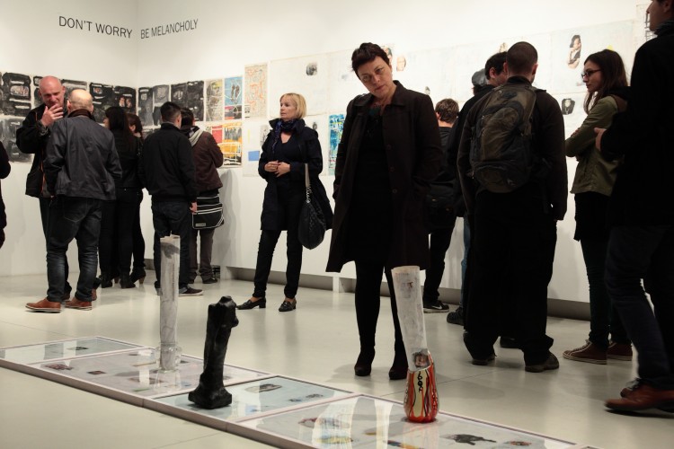 És itt ugranánk fejest a kiállítás címében megidézett fogalmat illetően, hogy vajon lehet-e jogos s elkerülhetetlen a kollektív melankólia. Mert melankóliára kényszerít valamennyinket egy helyzet, amelyben cselekedni, építeni, örülni szeretnénk, s mégsem tudunk, s bizony nincs kizárva, hogy önhibánkon kívül, így jobb híján nem marad számunkra más, mint a szomorúsággal kitöltött, lemondással fényezett, belenyugvással kibélelt elvágyódás oda, ahol úgy tűnik, kicsit jobban, szebben, vidámabban, sikeresebben működnek a dolgok, vagyis egyszerűen szólva: szebb és jobb az élet.