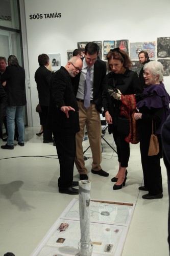 Mert mi más is lehetne a művészet szerepe, különösen mai világunkban, ahol a jó szándékú kezdeményezés, a naiv gondolat, a bárgyú szeretet, egyszóval mindaz, ami a művészet eredendő és elvitathatatlan tulajdonsága, valamint a benne rejlő szellemi érték és az utazásra hívó gondolat, nos hogy ezeket eltiporja oly sok minden. S hogy mi minden, azt Soós Tamás különös tacepaoján, faliújság-szerű frízén követhetjük nyomon, a kollázsok, kitakarások, kiemelések, átírások, átértelmezések, átfestések, a saját nyelv megteremtésének igényét, lehetőségét és bizonyítékát felvonultató tárlatán.
