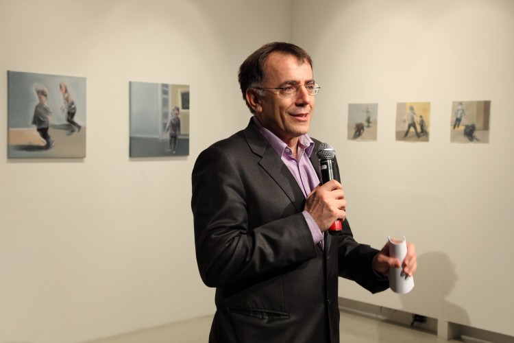 Az egyik képen láthatunk egy asztalon megjelenített csokor virágot, valamint mellette és mögötte az árnyát, a negatív, a más dimenzióba vetített voltát is. Kisebb képein gyerekek futnak, olyan sebesen térben és időben, hogy az arcukat nem is látjuk, nem is tudjuk pontosan kivenni, mert az nem is fontos, hisz nem csak egy arcról van esetükben szó, hanem mindegyikről, az összes gyermek arcáról, akik álom és valóság, lét és nemlét, az itt és ott síkjai között mozognak megdöbbentő közvetlenséggel és könnyedséggel.