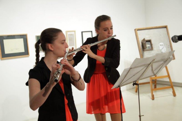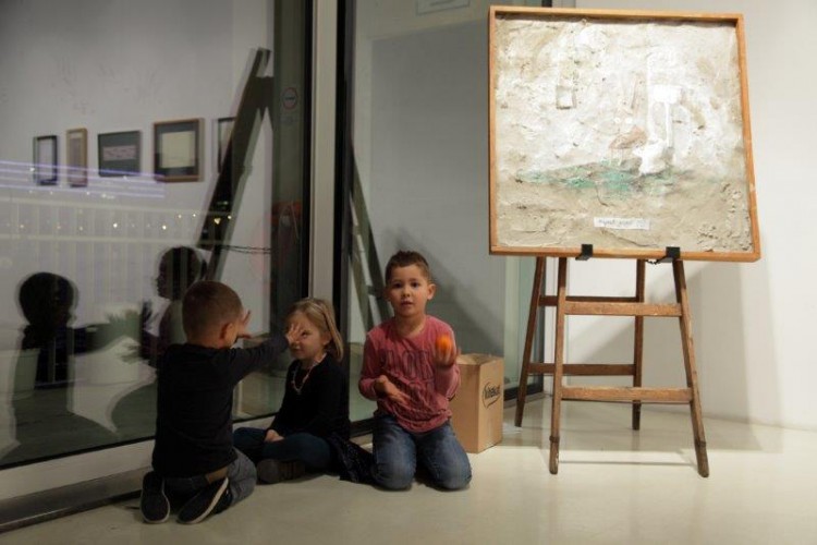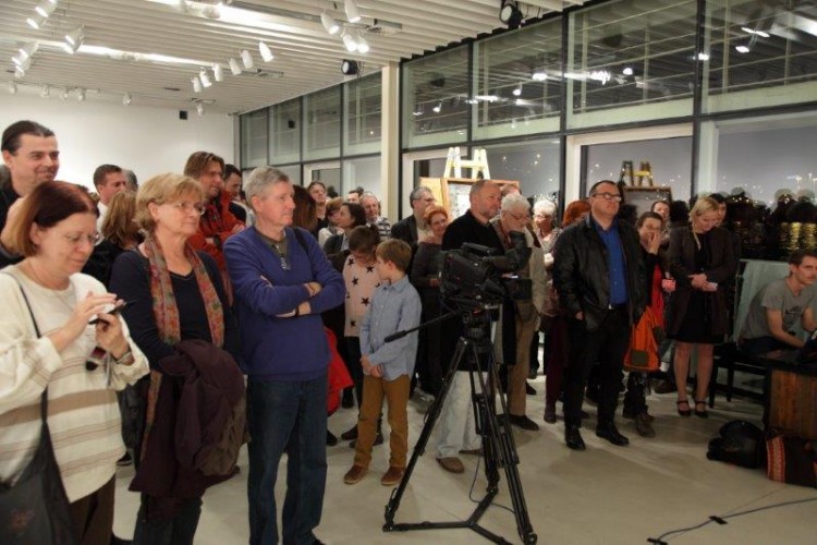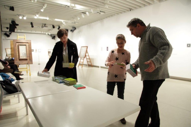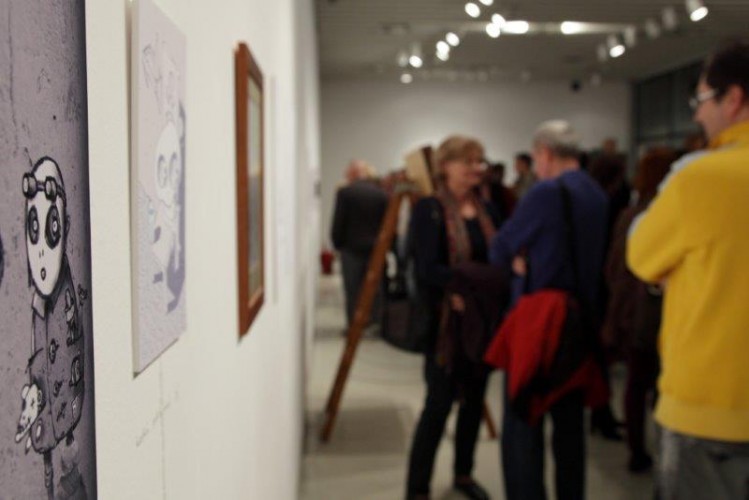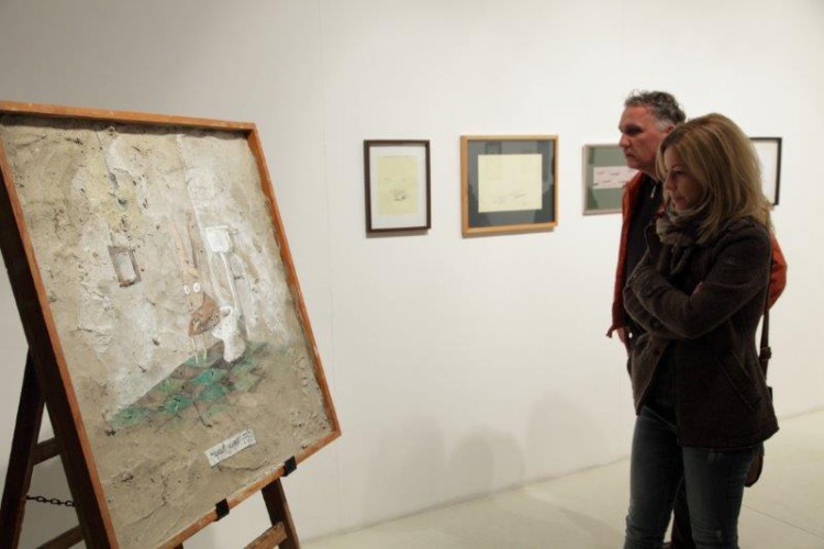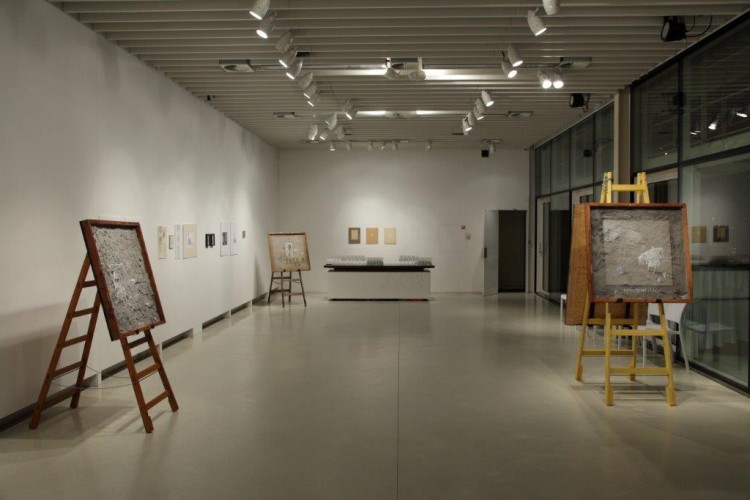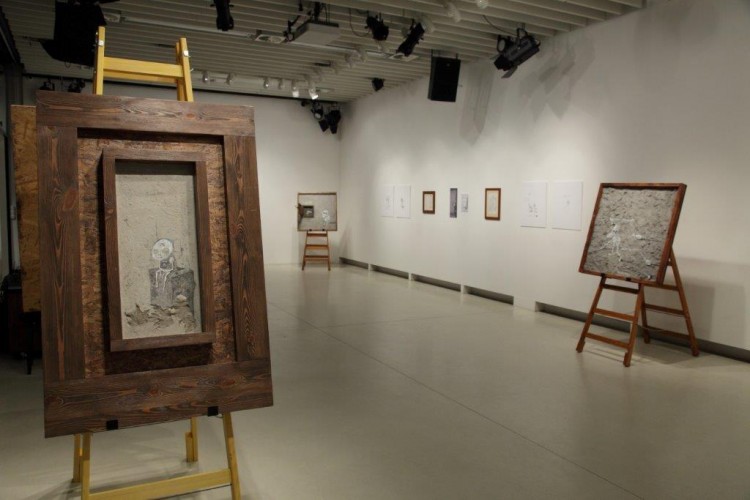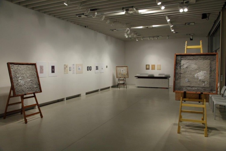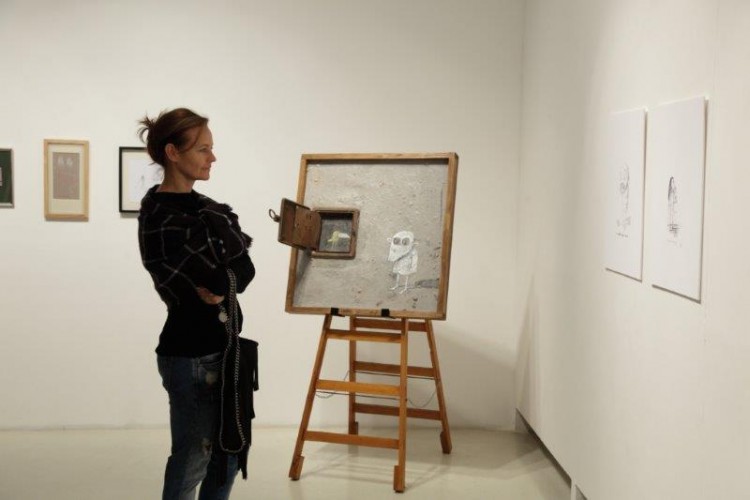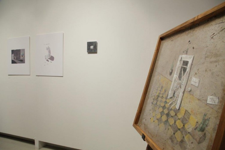 A kiállításon a natúr betonképek és a grafikák mellett láthatjuk még néhány könyvillusztrációját is.
