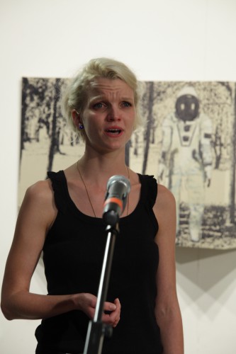 Szerencsére a kiállítás záróköveként itt van ez a kis paraván az erdővel és a furcsa, suta űrhajóssal. Igaz, hogy nem tudhatjuk, milyen szándékkal közelít, mindenesetre a különös kis figura kulturális asszociációs mezeje a maga művészettörténeti beágyazottságával egyfajta kiegyensúlyozottság, nyugalom reményével kecsegtet. Nem tudhatjuk, merre kereshetjük mindezt. Viszont reméljük, hogy létezik. Valahol.