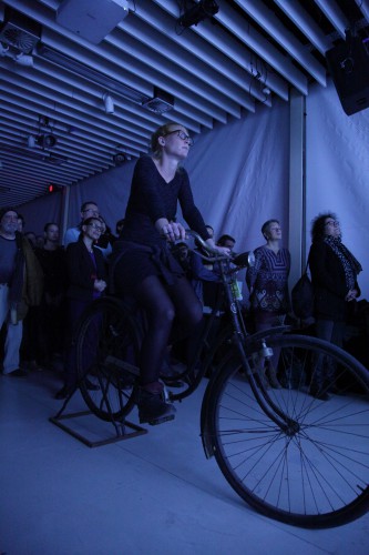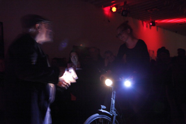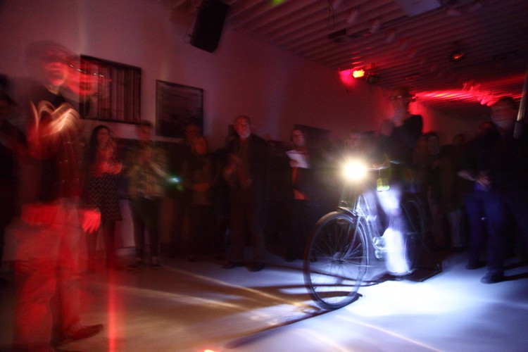 A megnyitó eseményről természetesen nem maradhat el Minyó sajátos műfaja, a fénykerékpár-akció sem, melynek ezúttal a művész lánya Szert Lili lesz a mozgatója.