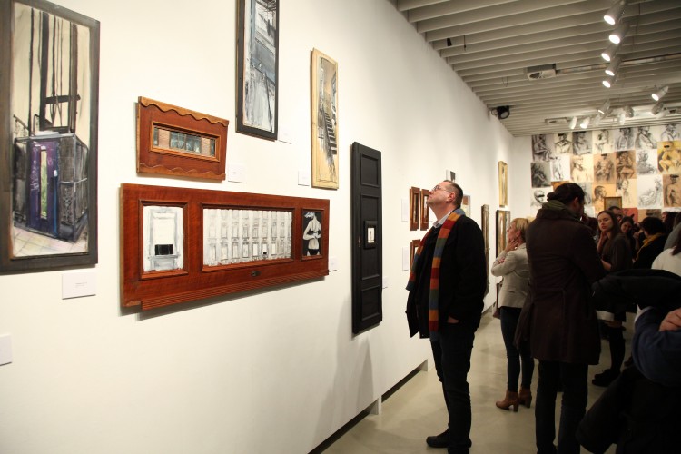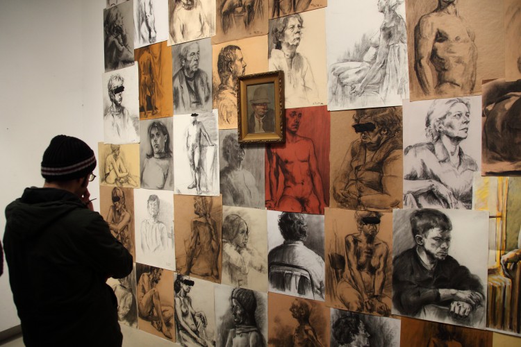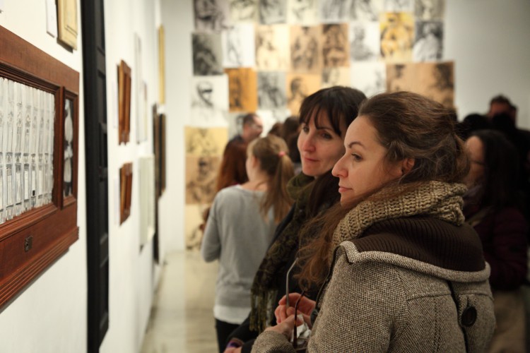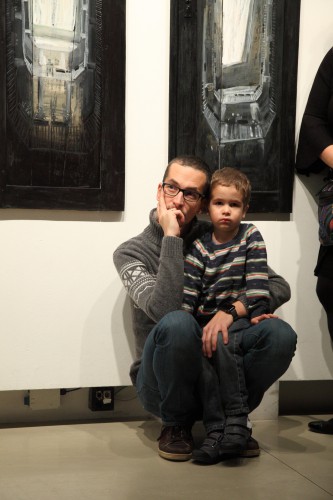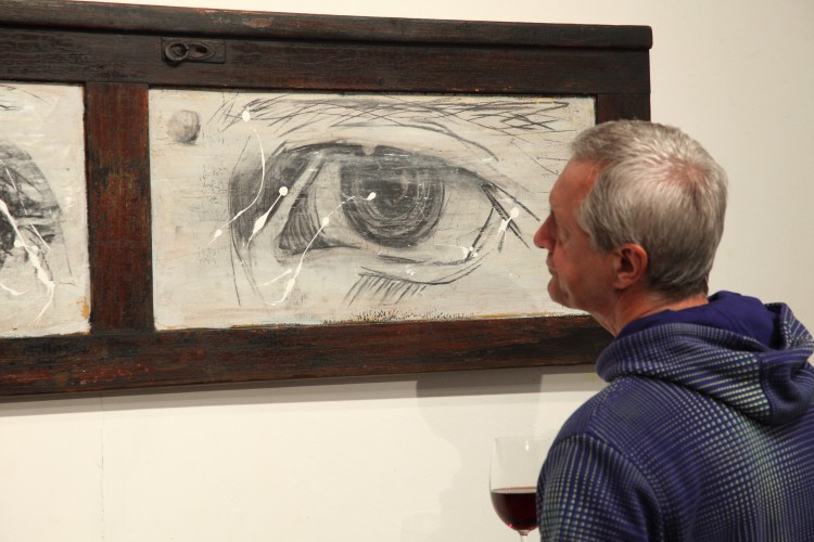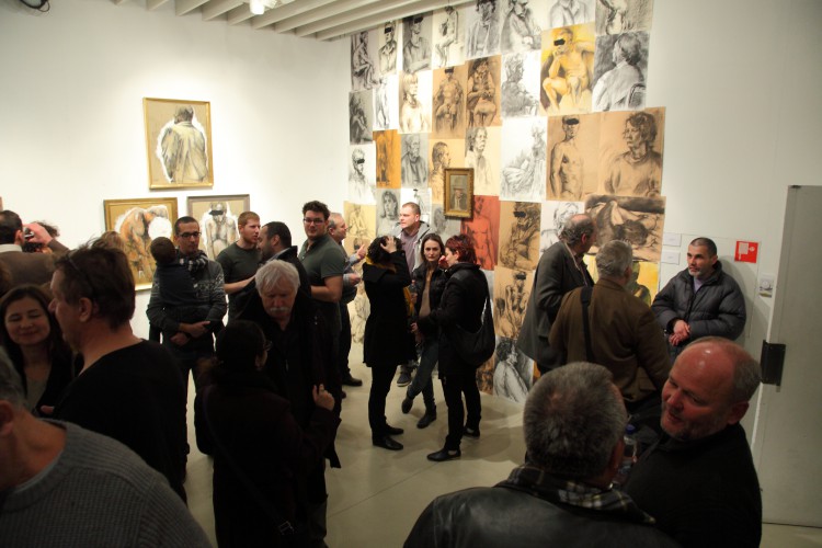 „Megfigyelni, meglesni valamit vagy valakit, nyíltan vagy titkoltan, ahogy a férj figyeli meg a nejét, a fiúgyermek az anyját, a diák a tanárát, a tanár a diákját. Ahogy mindig is vonzóan hívogató tud lenni egy félig leengedett redőny, egy félig behúzott függöny, egy opálosan, gyéren megvilágított jelenet, személyes történet a szemközti ház második emeletén, a lépcsőházban felfelé igyekvő lábak látványa, melyekhez nem tartozik test, arc, csak egy elmosódott mozdulatsor, ugyanakkor annál élesebb ütemes kopogás. Mindez végigkísér minket, megtölti mindennapjainkat, elmosódva, összekuszálódva, vagy épp tűélesen kirajzolódva. Krakkóban, Rómában, a rajziskolában (ahol először volt szabad tudományosan megfigyelni az emberi test részleteit) vagy a pesti gangokon. A kiállításon beleleshetünk az életem korábbi leselkedéseibe is, így láthatunk egy akt rajzokkal betapétázott falat, Krakkóban vagy Rómában készült képeket. A kiállítási anyag nagyobbik hányadát azonban jelenlegi műtermem s az onnan induló kitekintéseim adják.” (Tóth Andrej)