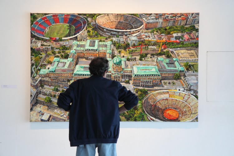„Baranyai Levente több mint két évtizede festi elkötelezetten a Föld portréját. A mintegy százhatvan darab festményéből összeálló kivételes festészeti életműve egy sajátos, a művész által kifejlesztett archeológián alapul. Olyan tereket, tájakat, létesítményeket láthatunk vásznain, amelyek lentről, azaz a földi felszínről nem érzékelhetők, vagy a jelenben már nem láthatók, mert rég elpusztultak már, vagy soha nem is léteztek, vagy lerombolásuk előtti utolsó pillanatban vagyunk. Baranyai archeológiai kutatóárka úgy „utaztatja” nézőit, hogy a teret és az időt, az ismertet és a kikövetkeztethetőt túrja fel festőkésével. Baranyai expedíciója azonban legalább annyira tényszerű és kritikai, mint minden más régészeti kaland. A feltárt múltbeli alakzatok által mozgásba hozza a meglévő emberi tudást, az azt kipótló képzelőerőt és a következtetésekből levonható jövő iránti felelősséget.