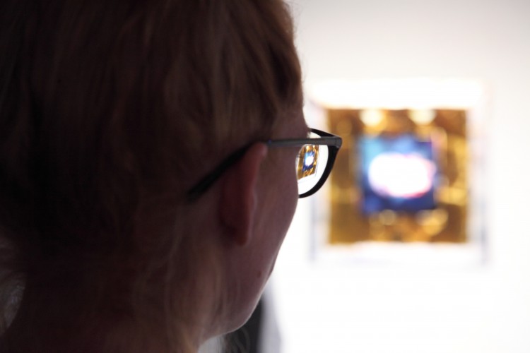 A kiállításon csak friss színes fotóalapú munkák lesznek láthatók. Minyó mélységi montázst építve arany- és ezüstmetállal kézimunkázza a plexi fotókat.