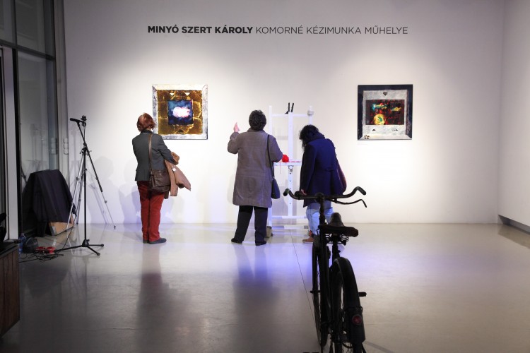 „Komorné Kézimunka Műhelye valós szolgáltató egység volt, a Régiposta utca 7-9. félemelet 4-ben működött a 60-as években, és kora ifjúságom alapképleteként minden lépcsőzésnél beexponálódott a fejembe a földszinti kis fekete, aranyszegélyes tábla látványa a fordulóban, ahogy gyerekként kettesével vettem a lépcsőket nagyszüleim házában. Főleg a kiírás zenéje vagyis inkább rigmusa fogott meg. Sok év elteltével az egyszerű, hétköznapi táblácska rigmusa visszatért! A névadóról nincs konkrét emlékem, egy gyermeki fantáziában kibomló kuszaság, valami, ahonnan akkor elrúgtam magam, hogy most megidézzem!”— így vall a művész, Minyó Szert Károly legfrissebb kiállításának címválasztási apropójáról. S ez az emlékfoszlány, illetve felidézésének módja sokat elárul Minyó szemléletéről, alkotási módszeréről, arról, ahogy e „beexponálódások” milyen nemes és rafinált módozatokban kerülnek nála előhívásra, majd milyen ékes és rendhagyó módon nagyításra.