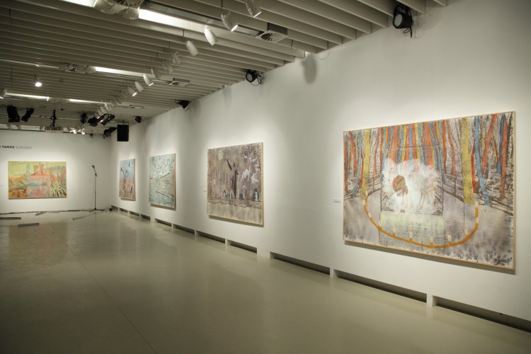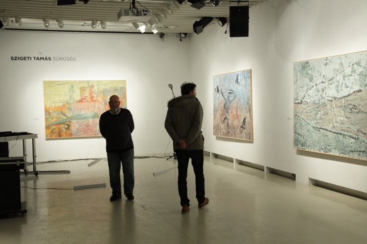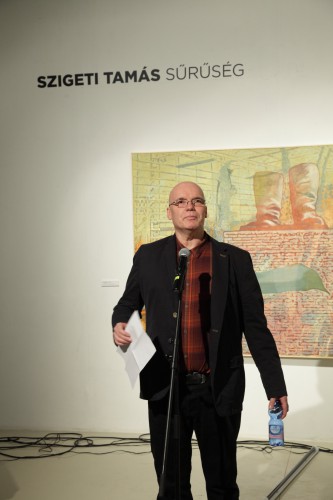 Szigeti Tamás számára képeket festeni egy jó ideje egyet jelent a téralkotással. A texturális kísérletek és a kollázs technikák az új képeken egyszerre utalnak térbeli elhelyezkedésre, az alá- és fölérendeltségi viszonyokra, és utaztatják a szemlélőt a „régen volt”, illetve a „mindez megtörténhet” felvetései mentén. A bódulathoz hasonló állapot, melyet a képek sugallnak, erős párhuzamokat mutat társadalmi/történelmi tudatunk megnyilvánulásaival.