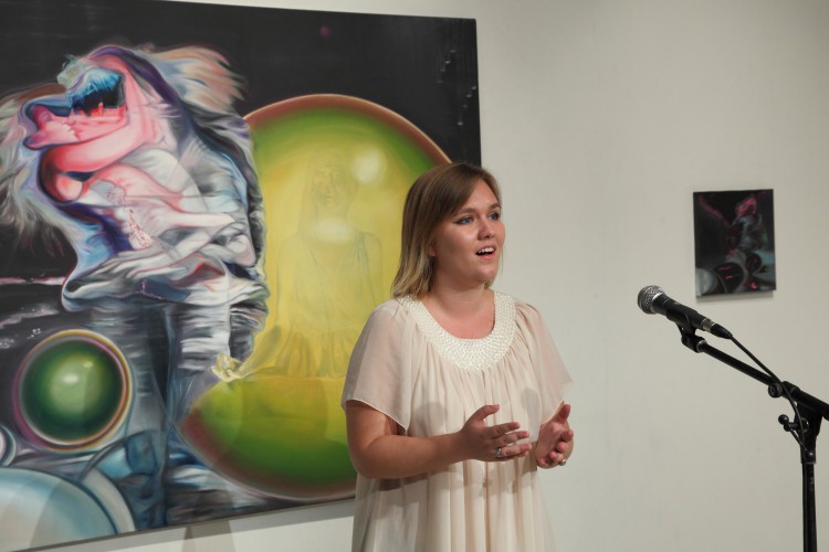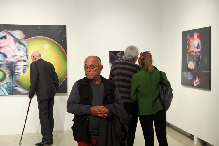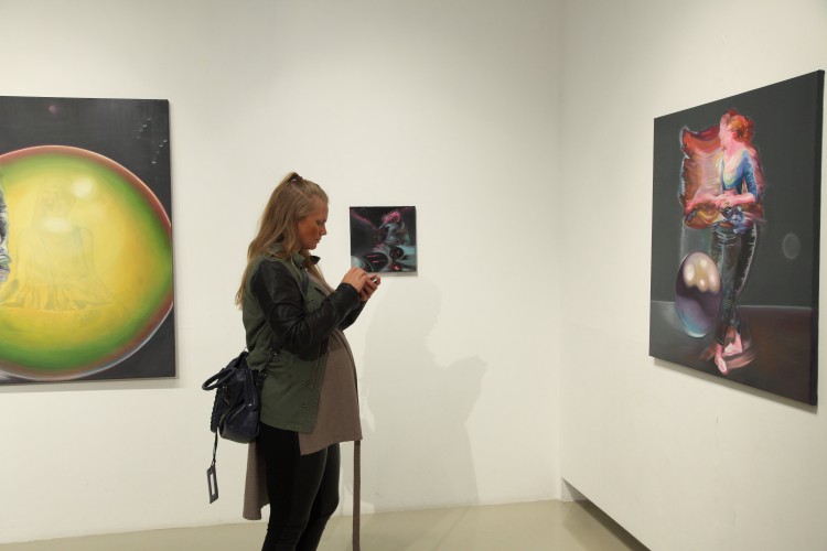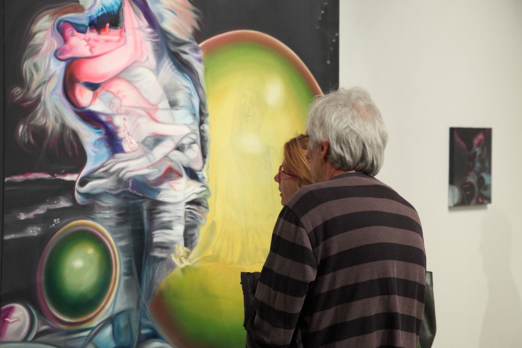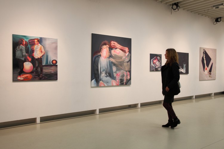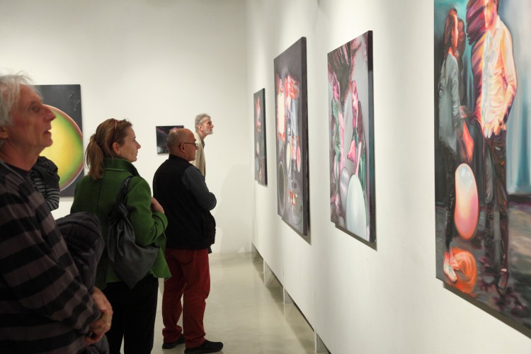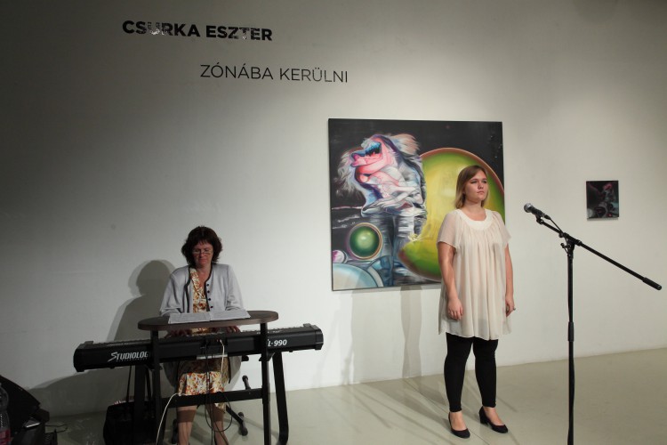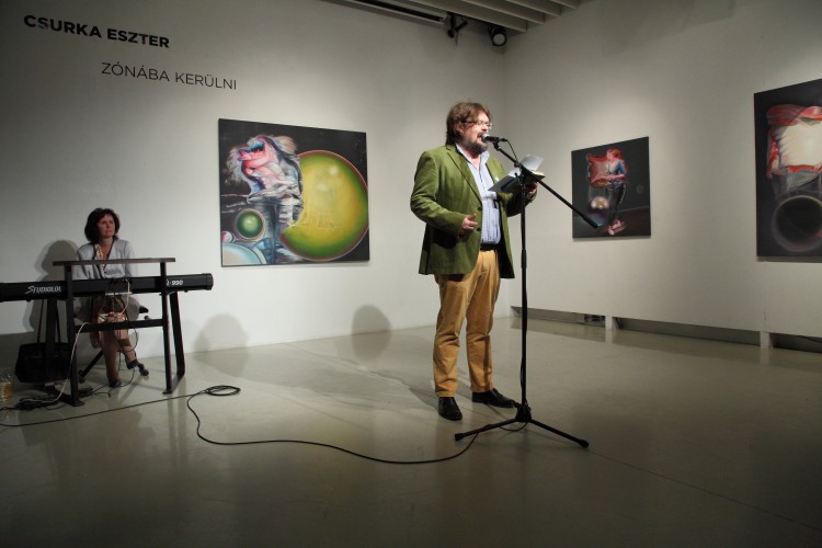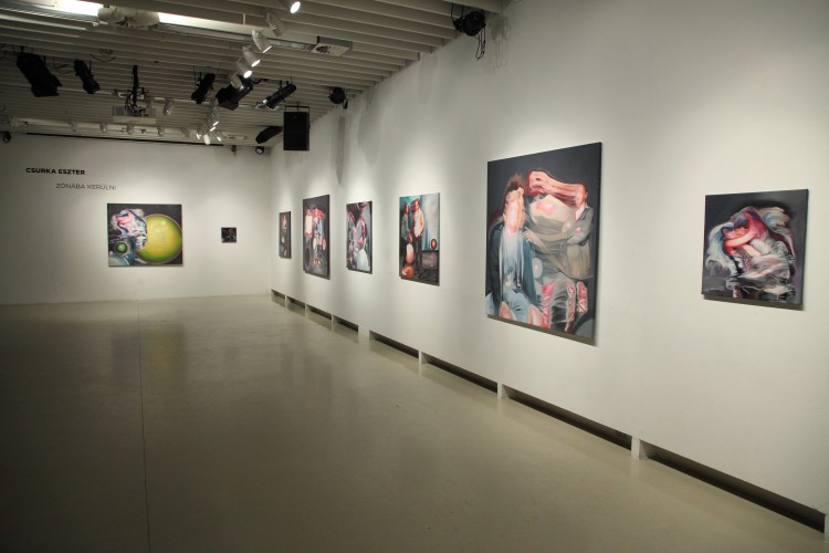 Vagyis mi az, ami a tudományosan megfogható és igazolható, és honnan kezdődik, ami már csak a művészet nyelvén leírható. Ennek a határterületein érzi magát leginkább otthon Csurka Eszter. A festményeken megjelenő testek dinamikája, az oldás és kötés és a színek konzekvens használata jellemzi talán leginkább a most kiállításra kerülő, legfrissebb képeit.